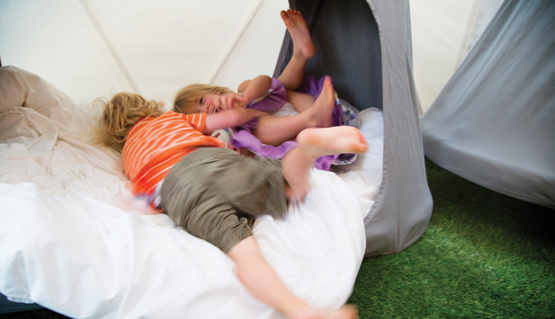 The dome and the covered kitchen-dining area are both on decking; they’re easy to ventilate as well as to batten down and stay snug; parents have the luxury, headroom and space of a partitioned-off king-size bed, but having the children under the same roof feels reassuring and safe. The al fresco area alongside gives you as much or as little exposure to the great outdoors as you wish, and the Plancha gas cooker gives you the flexibility of either feeding the fastest food to on-the-go children, or six of you sitting down in style to something more complicated and substantial.